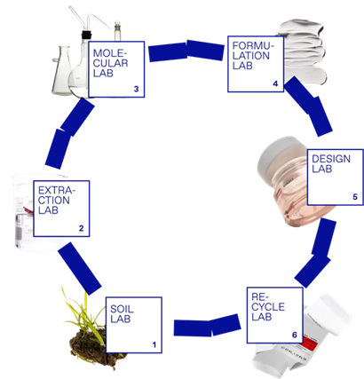 From the soil and seeds, the extraction process, the primary and biological research to the formulation based on hundreds of efficacy + safety tests, the design and back to recycling and the re-use of all the components.
